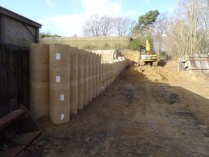 • 1 m³ compacto → más de 100 m³ de barrera construida