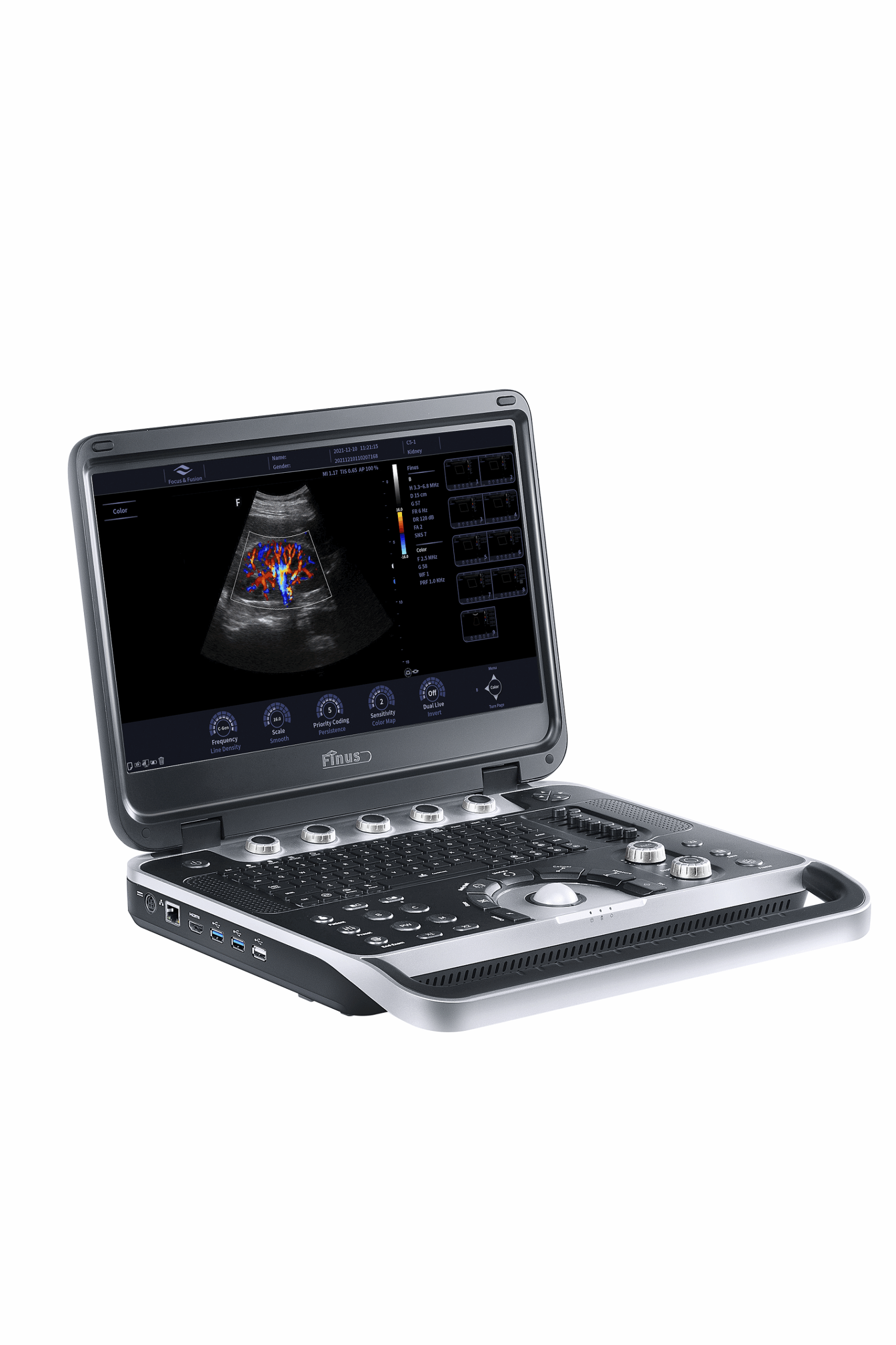 Las tecnologías de imágenes y la tecnología de transductor únicas de Finus 50 brindan al usuario imágenes detalladas para mejorar su confianza en el diagnóstico. Posee monitor LCD de 15,6 pulgadas para una mejor visualización, carcasa de aleación de magnesio para mejor protección, batería integrada, puerto activo para 3 transductores. Diferente posibilidad de transductores y accesorios.