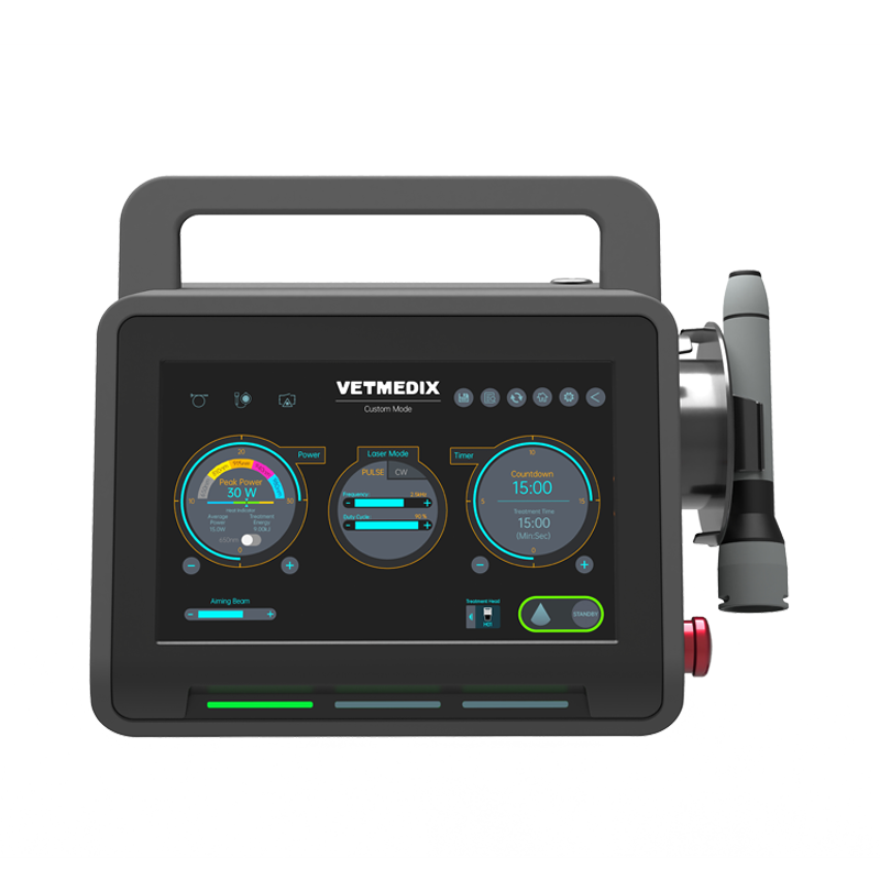 Vetmedix trata a los animales con fotobiomodulación láser de alta energía (PBM), que utiliza longitudes de onda específicas de luz láser para favorecer la cicatrización, aliviar el dolor y reducir la inflamación.